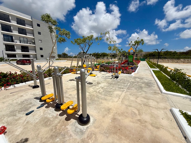 - Club House con gimnasio, piscina, restaurante, bar, salón de eventos y área de juegos para niños